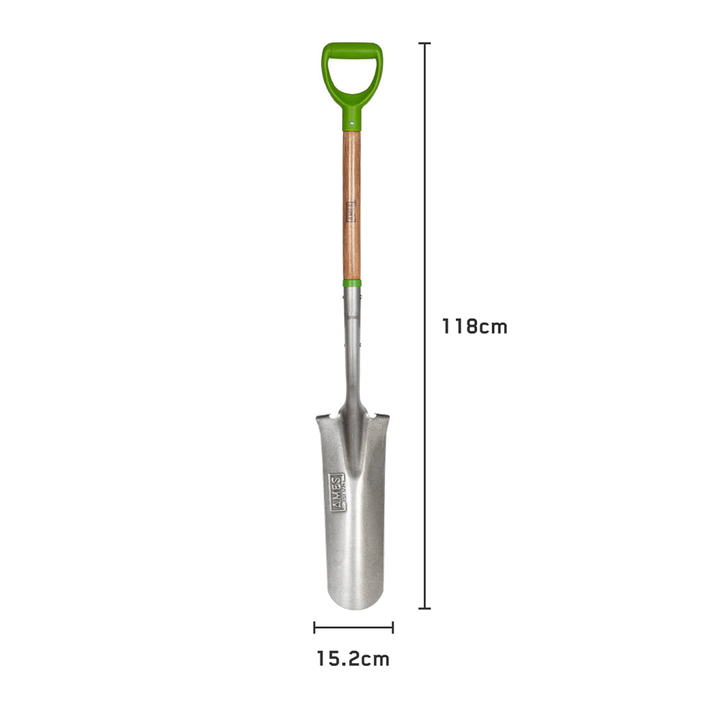 The AMES Carbon Steel Planting Spade is ideal for digging precise holes in dense soils. The extra-long, narrowly designed head makes it perfect for deep-rooted shrubs and perennials. Uniquely forged from a single piece of high-quality carbon steel, meaning no weld lines or weak points, for optimal strength and performance. The head includes our innovatively designed Comfort Step foot treads, that are wider and larger, with added grips for a secure and comfortable foot placement.