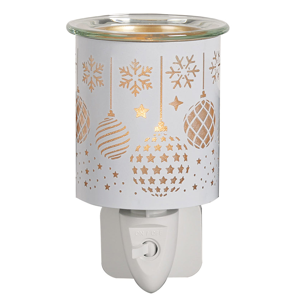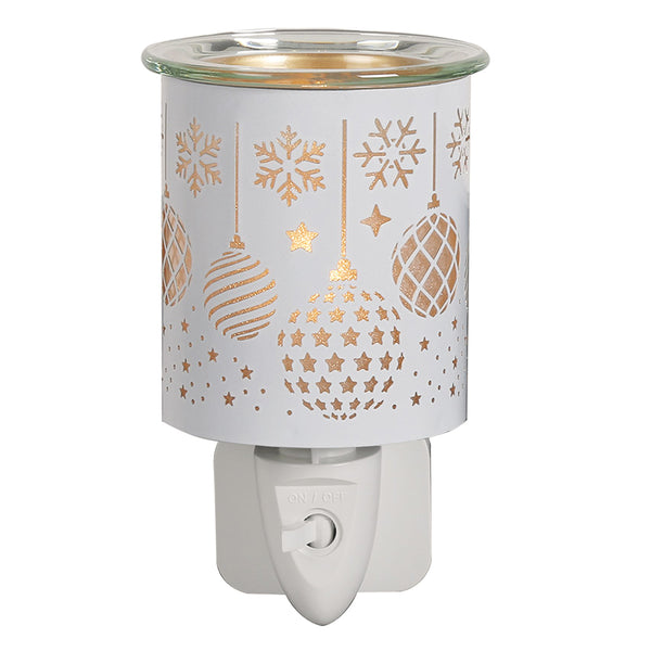 A beautiful baubles design silhouette plug in which will create a shimmery glow.