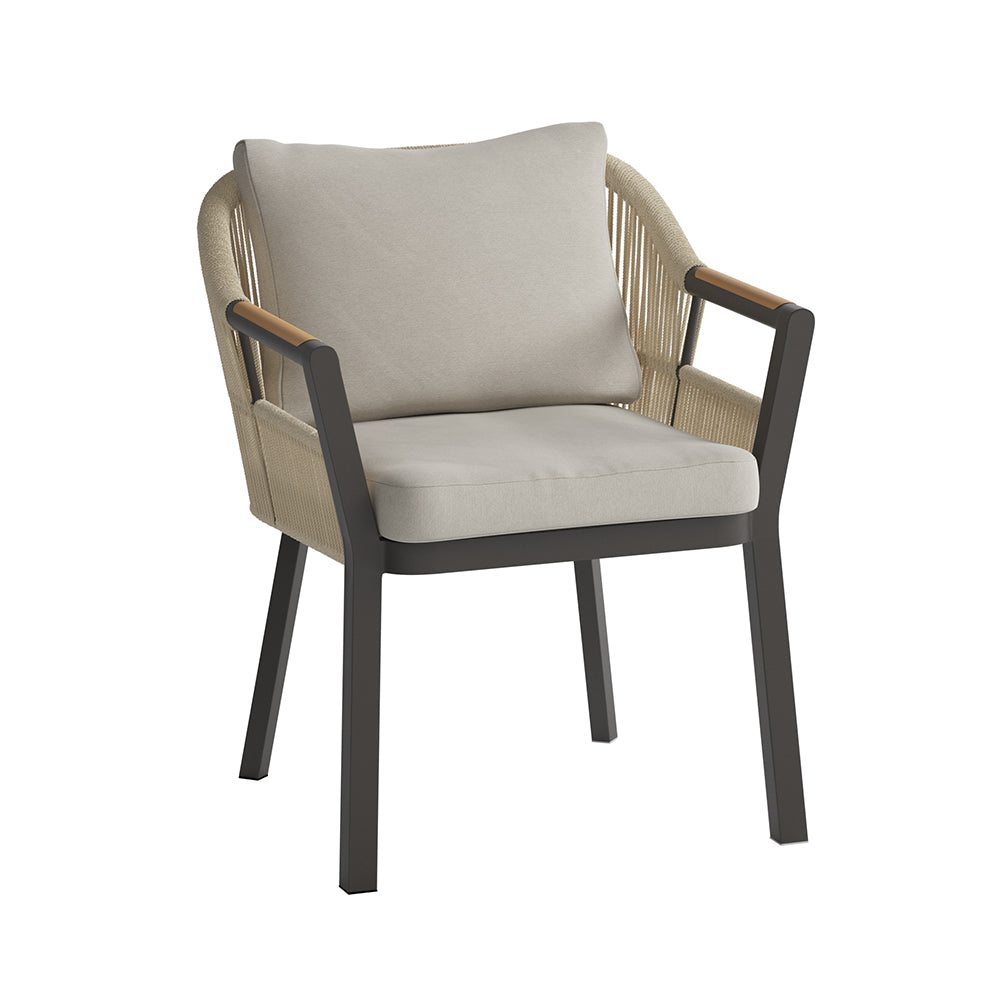 The set includes a 150cm round table, 6 lounge chairs and cushions. The neutral colours with wood effect will look great in any garden. The set is even sophisticated enough to look great in your conservatory or indoor space.