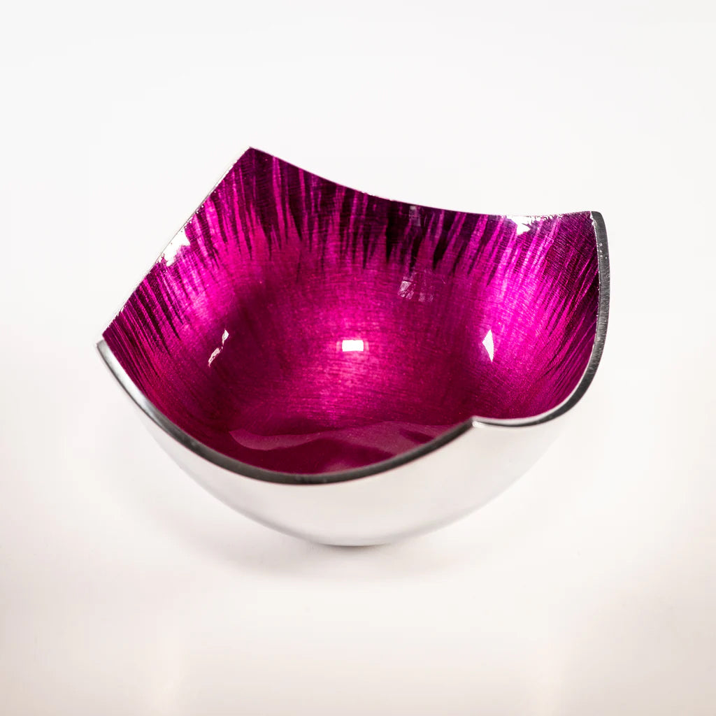 A beautifully designed bowl that comes in a variety of colour options and perfect for snacks and starters, dips and olives. They are Fair Trade and hand made by Indian artisans. The products are made from recycled aluminium.
