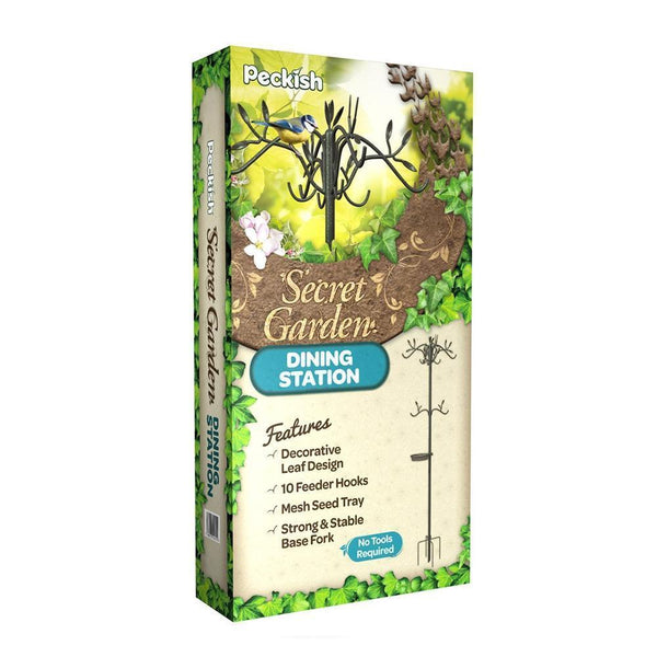 It is important to feed wild birds all year round. Peckish Secret Garden Dining Station has 10 feeder hooks to hang your feeders from.