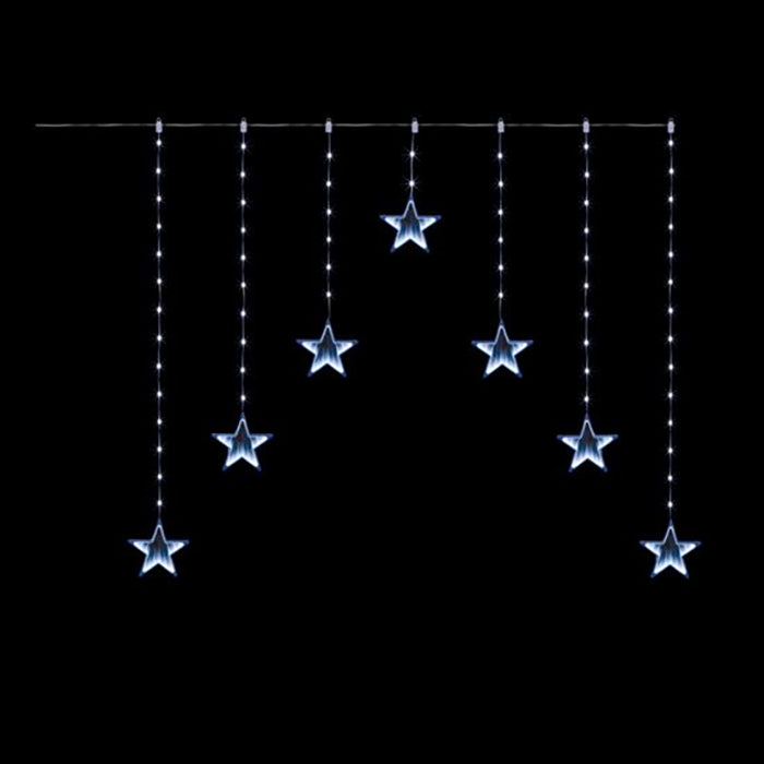 Brighten up your window display with this infinity star v shaped curtain LED light. Featuring 7 led strings with infinity effect stars. Mains operated.