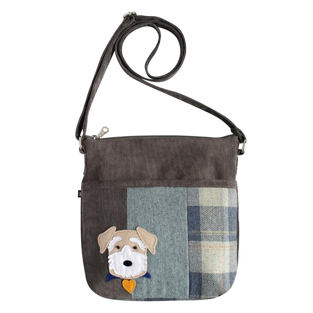 This wonderful tweed Amelia bag is crafted from gorgeous coloured tweeds and fine baby cord. A simple design with one main zipped compartment containing internal pockets for keys and phone and one outer slip pocket on the front. It's the fabulous animal applique details that really bring this style to life with images depicting household favourites such as our lovely Scotty dog.